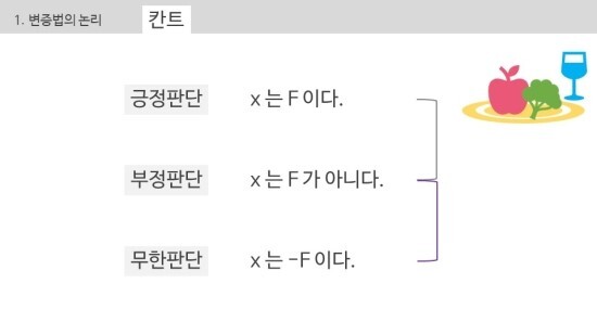 방금 본 것이 칸트에서 긍정판단과 부정판단에 대한 부분이었습니다.