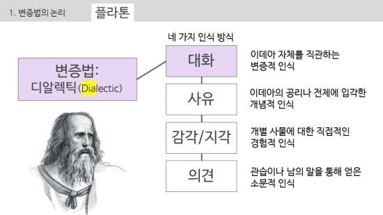 변증법은 플라톤에서 대화술을 의미합니다. 플라톤의 책 자체가 변증술을 담고 있는 책이죠.