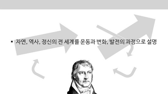 이렇게 해서 헤겔은 자연, 역사, 정신을 운동과 변화, 발전의 과정으로 나타내고, 그러한 것들의 내적인 연관을 파악하고자 합니다.