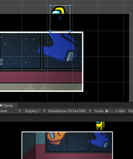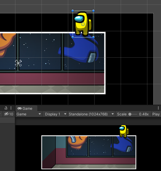 게임 뷰에서는 문제가 없으나, 씬 뷰에서는 다른 UI 이미지들에 가려서 캐릭터가 안 보이고 있다.